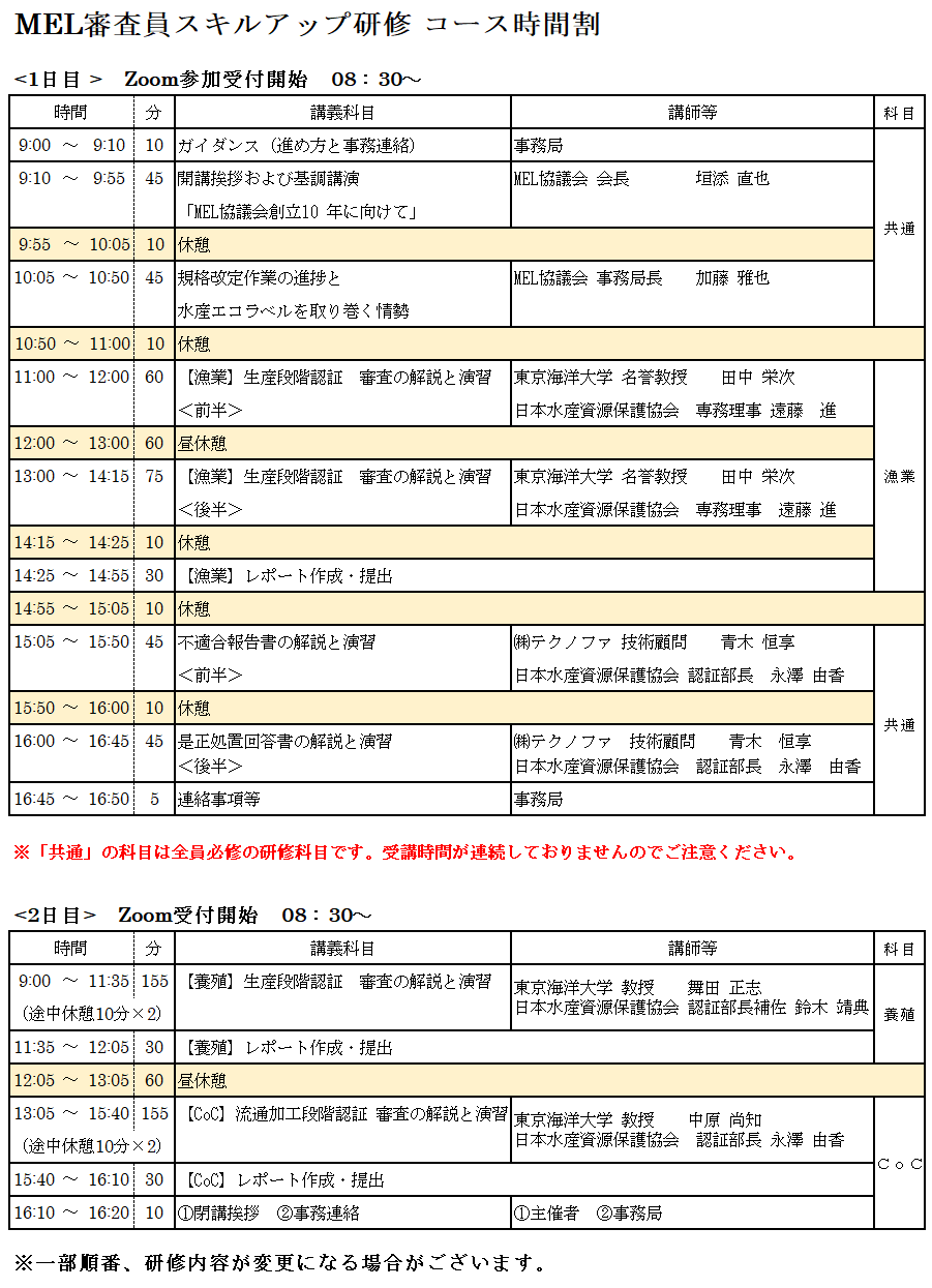 本研修は、既存のMEL審査員のスキルアップのための研修です。